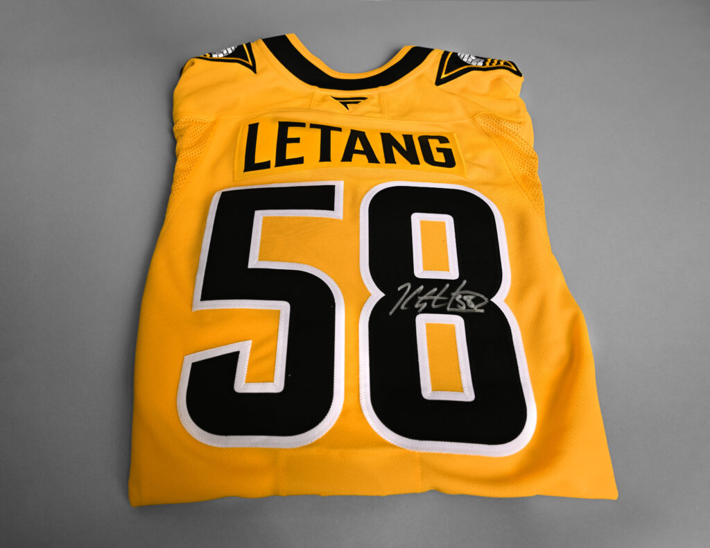 Suit up to watch the next Pittsburgh Penguins game with this Penguins Autographed 2025.26 Third Jersey. The Fanatics jersey prominently features a standalone skating penguin as the crest on the ‘Penguins Gold’ background. A triangle shoulder patch, symbolic of Point State Park, encompasses three river waves, a black monochromatic checker pattern and an igloo to pay homage to the team’s original home. Guarantee your very own signed jersey in a Platinum or Gold Penguins Charity Bag or take a chance-to-receive an autographed jersey in a Black Penguins Charity Bag as listed below. Note: There is no opportunity to pre-select your player or size. All jerseys are either size 52 or 54.