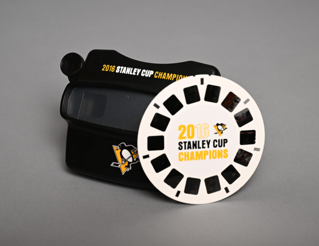 Our 2016 Stanley Cup Champions Retro Viewer offers a nostalgic look back at the Pittsburgh Penguins’ 2016 Stanley Cup victory through a curated collection of images. Designed in classic throwback style, it gives fans the chance to relive unforgettable moments from the championship frame by frame. One photo reel is included and features seven (7) iconic images. It’s a fun, hands-on keepsake that brings one of the franchise’s greatest triumphs back to life.