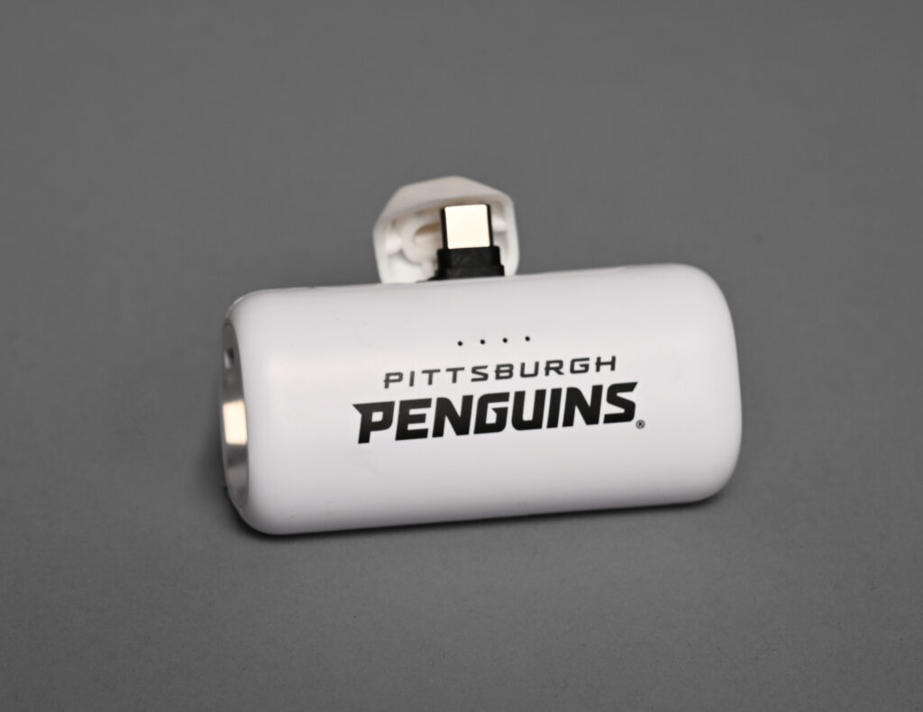 Our sleek Penguins Power Bank keeps your devices charged on the go, featuring the team wordmark logo for a bold, fan-ready look. Equipped with dual charging ports compatible with nearly all smartphones and tablets, it combines convenience with style. Compact and durable, it’s the perfect accessory for game days, travel, or everyday use. Compatible with USB type-C and lightning charging ports.