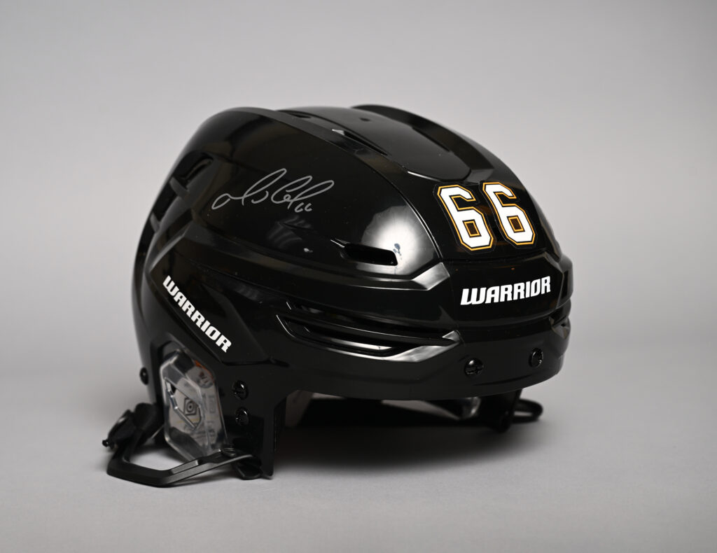 Our Mario Lemieux Autographed Helmet is decorated with iconic No. 66 decals that pay tribute to Lemieux’s legendary career. Finished with premium detailing, the Warrior Alpha One Pro helmet features Mario’s autograph – honoring one of the greatest players in hockey history.