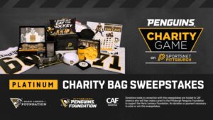 - Keep an eye out for our charitable sweepstakes during Penguins Charity Game for a chance to win a Platinum Penguins Charity Bag! The charitable sweepstakes will begin on March 21 at 9 AM EST and end on March 21 at 9 PM EST.